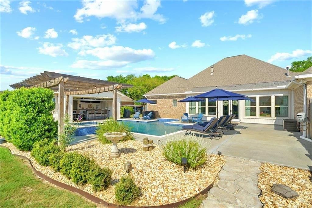 There is only one word to describe this home: Amazing. Where should we start? The backyard! Your Own Private Resort-designed for entertaining and everyday luxury. Enjoy a heated gunite pool and hot tub, along with a fully enclosed custom pool house featuring a sports bar with kegerator, lounge area, electric fireplace, and half bath. Rolling garage doors create seamless indoor-outdoor living and 'fun in the sun. A large pergola, professional landscaping, and additional yard space complete this outdoor oasis. The property also offers a double garage and a separate two-bay garage for ample parking and storage. Step inside from the covered front porch into a spacious foyer with soaring 11-foot ceilings, wood flooring throughout the main areas, and an open-concept layout. The great room features a gas fireplace and flows into the dining area and the heart of the home-the kitchen. Highlights include quartz countertops, white cabinetry, tile backsplash, center island, gas range, stainless steel appliances, voice controlled smart faucet and a beautiful pond view from the kitchen sink. A walk-in pantry and well-designed laundry room add function and charm. The primary suite offers an oversized bedroom, two walk-in closets with built-ins, and a spa-like bath with a soaking tub, dual-head shower, and double vanities. Guest bedrooms are spacious and comfortable. Additional features include a bonus/game room, dedicated office, central vacuum system and tankless water heater. Major updates: fortified roof (2021), HVAC (2023/2024), re-insulated attic (2024), hurricane shutters, irrigation system, and generator hookups. Located across from the neighborhood common area with a stocked pond and gazebo, this home in sought-after Avalon is meticulously maintained and truly one of a kind. Don't miss it! Buyer to verify all information during due diligence.
