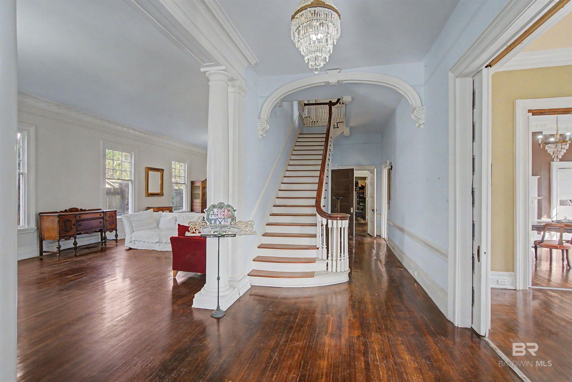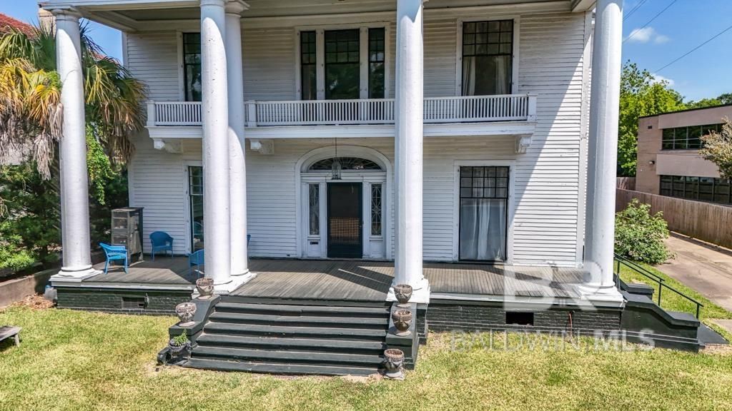 Historic Southern Neoclassical Gem in Mobile Oakleigh Garden District. If walls could talk, this 1904 Southern beauty would have stories to tell. Designed by legendary architect George B. Rogers famed for the Van Antwerp Building, the Egyptian-Revival Scottish Rite Temple, and so many of Mobile's most iconic landmarks, this home is both a piece of history and a potential showstopper for modern living. From the moment you see the sweeping columns, temple-style pediment, and grand balcony, you'll know this isn't just another house it's a statement. Built as a private residence and later transformed into The Women's Clubhouse Association in 1929, it has hosted weddings, galas, and gatherings for nearly a century. And now, it's ready for your story. Inside, soaring ceilings, floor-to-ceiling windows, and refined details set the stage. The gracious entry flows into a ballroom, parlor, and formal dining room perfect for cocktail parties, concerts, or holiday dinners. The gourmet kitchen makes entertaining effortless, with a 12-foot island, Wolfe 6-burner stove with dual ovens and induction grills, walk-in pantry, butler pantry, and wine closet. Everyday life feels just as special, with a sunny breakfast nook, inviting front parlor or sunroom, and plenty of room for casual gatherings.The main floor includes a mother-in-law-style handicap-accessible bedroom and full bath with separate entrance; while upstairs offers 4 bedrooms, a sunroom, and an expansive primary suite with en-suite bath, fireplace and sweeping views of ancient palms and oaks. Modern comforts include a roof with radiant heat barrier (2016), updated electrical and plumbing (2007), furnace (2007), and an energy-efficient split unit in the kitchen (2015).Beyond its beauty, this home carries a legacy. As Mobile's 1st venue for women's organizations, it became a hub of civic life. the mixed-use potential, it's ready to shine again, as a private residence, boutique inn, law office. Seller is related to Agent Buy