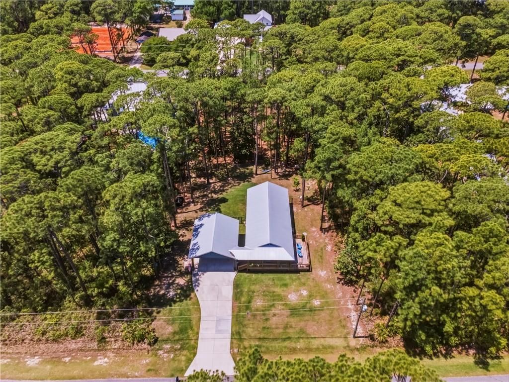 Tucked beneath the trees on beautiful Dauphin Island, this custom coastal bungalow offers the kind of life people dream about. Just minutes from sugar white beaches, world-class fishing, birding trails, and golf cart rides to sunset, this one-bedroom retreat blends island charm with upscale comfort. Several photos are virtually staged.Inside, you'll find a thoughtfully designed space with hardwood oak floors, tongue-and-groove pine ceilings, and soaring vaulted ceilings that make the space feel bright, open, and inviting. A tall front door with beveled glass creates a striking first impression, while the stunning custom kitchen features sparkling white quartz countertops, a large island, farmhouse sink, soft-close drawers, stainless steel appliances, and gas range, creating a beautiful space for cooking, entertaining, or everyday living. A cleverly designed Murphy bed blends seamlessly into the living area as attractive shelving, offering added flexibility for guests.The spacious bedroom features a vaulted ceiling and a large walk-in closet with custom built-ins, while the bathroom offers high ceilings that enhance the open, airy feel. Outside, enjoy a welcoming front porch, side deck, and fenced backyard with a durable rubber-coated chain link fence. The attached covered carport offers 14-foot clearance, ideal for storing a T-top boat. Built with low-maintenance fiber cement siding inside and out, this well-crafted island retreat also includes a storage building, durable metal roof, and tankless gas water heater.Though it feels tucked away from the rush of everyday life, Dauphin Island is surprisingly easy to reach. Located about 40 minutes south of Interstate 10 and Interstate 65, the drive is simple and direct once you leave the interstate. I-10 connects you easily to New Orleans, Biloxi, Mobile, and Pensacola, while I-65 provides a straight route north to Nashville, Louisville, and beyond. It's a coastal escape that feels far away, without being far away at all. Several photos are virtually staged.Information provided is deemed reliable but not guaranteed; buyers should independently verify all matters important to them, including but not limited to dimensions, square footage, deed restrictions, zoning, ordinances, insurance requirements, and any other facts relevant to their decision.